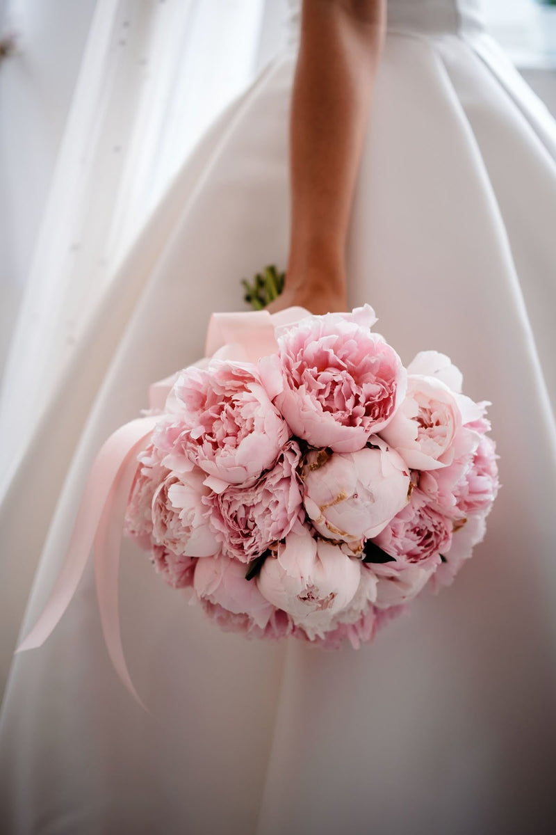 Buchet Mireasă cu Trandafiri Roșii & Pivoți