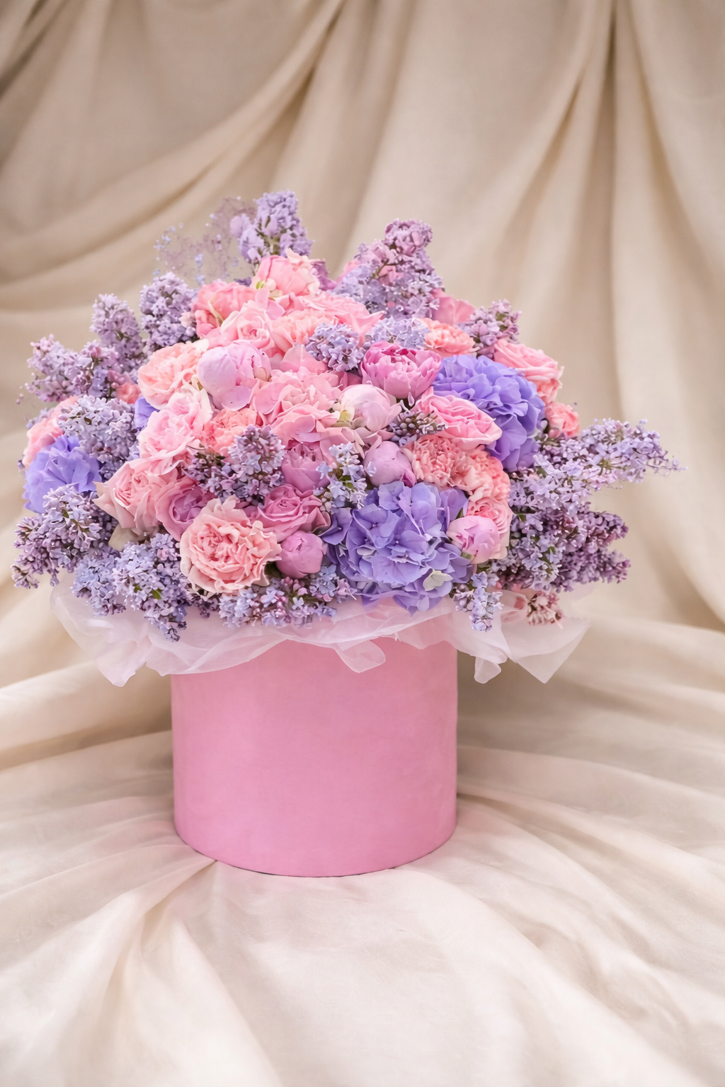 HORTENSII TRANDAFIRI, RANUNCULUS, BUJORI/TRANDAFIRI, LILIAC/SEZON, GAROAFE, EUSTOMA, CUTIE PERSONALIZATA