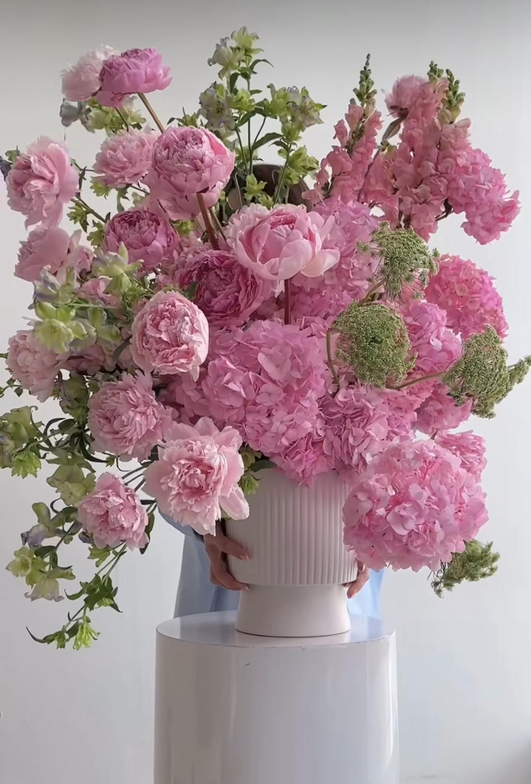 BUJORI, HORTENSII, DELPHINIUM, MATTHIOLA, DAUCUS VERDE, CUTIE INSCRIPTIONATA