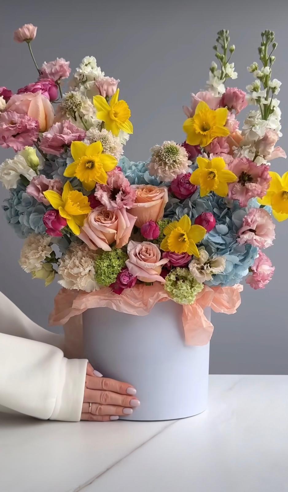 NARCISE, TRANDAFIRI, MINI TRANDAFIRI, LISIANTHUS, DIBURNUM, MATTHIOLA, HORTENSII, GAROAFE