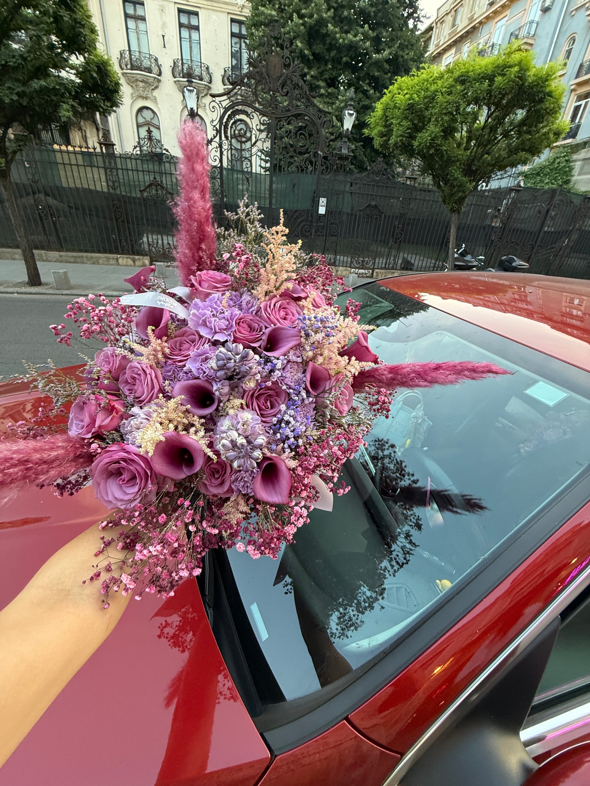 TRANDAFIRI, PAMPAS, GYPSOPHILA, LICIANTHUS, FLORI USCATE BEJ, LAVANDA SI PANGLICI