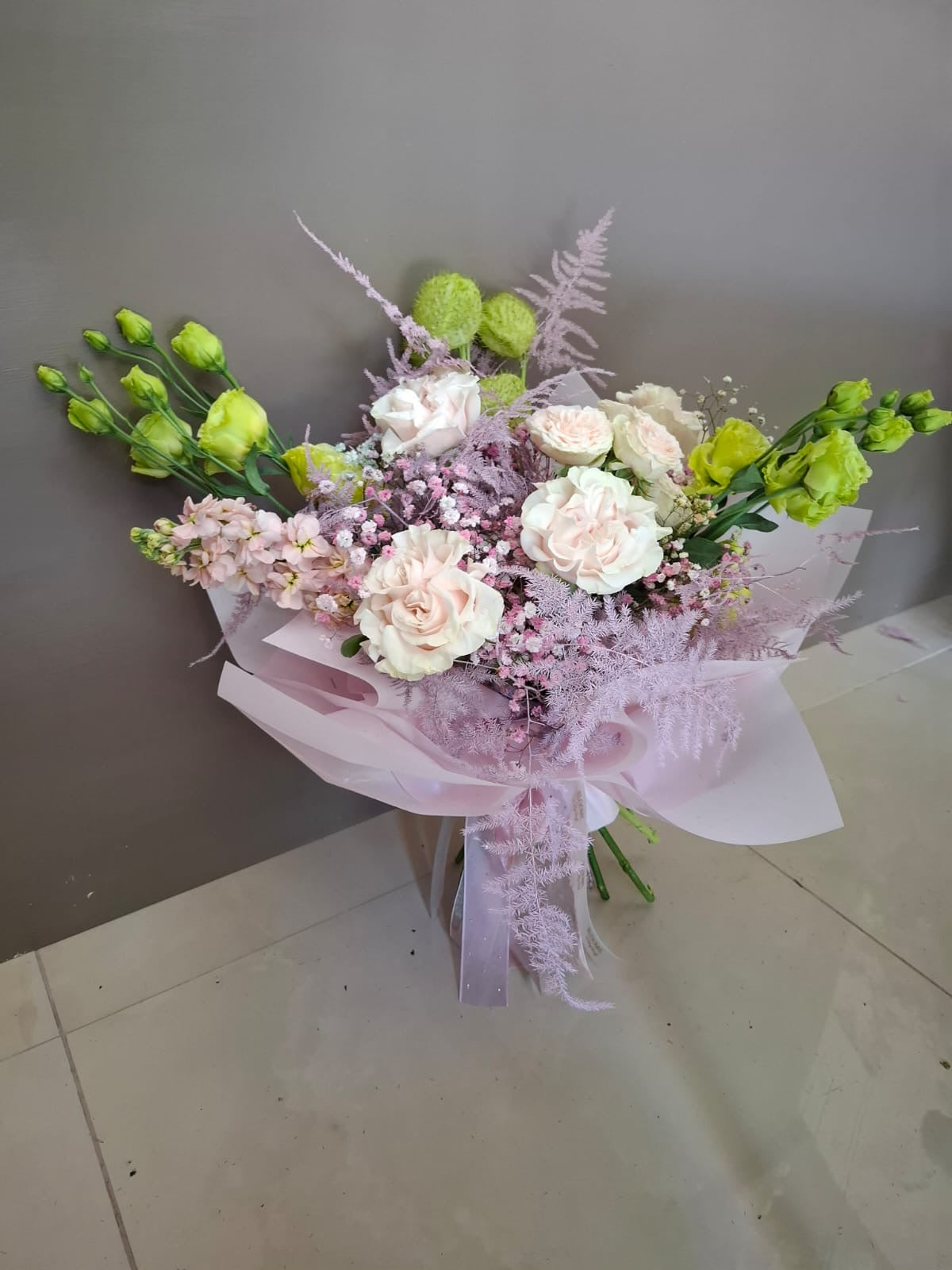 TRANDAFIRI, LISIANTHUS, GYPSOPHILA, ASTILBE, MATTHIOLA, VERDEATA